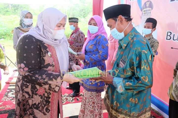 MUAROJAMBI - Bupati Muaro Jambi Masnah Albusyro, SE menyerahkan sertifikat secara simbolis pada kegiatan Penyerahan Sertifikat Tanah untuk Rakyat Redistribusi Tanah Objek Reforma Agraria.