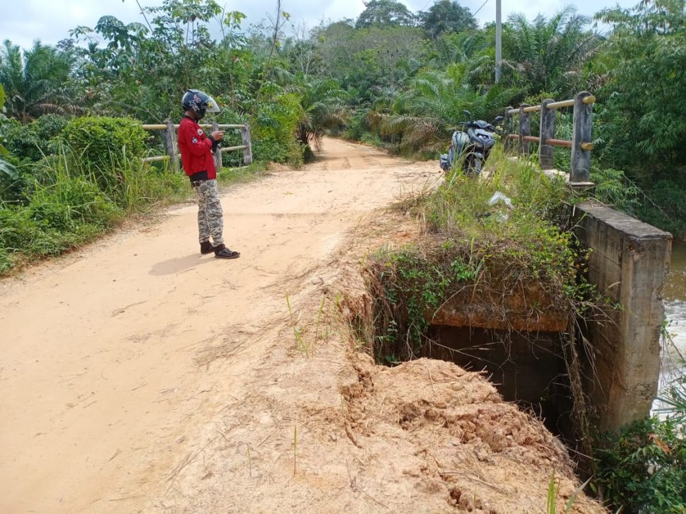 MUAROJAMBI - Jembatan penghubung antar Desa Suak Putat menuju Desa Tanjung Lanjut, Kecamatan Sekernan, Kabupaten Muaro Jambi rusak parah. Tepatnya di RT. 07 Dusun Bedeng Rambut.
