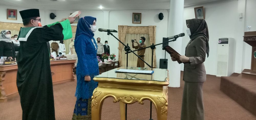 MUARABULIAN - Dewan Perwakilan Rakyat Daerah (DPRD) Kabupaten Batanghari menggelar rapat paripurna dalam rangka pengucapan sumpah pengangkatan Pengganti Antar Waktu (PAW) anggota DPRD Kabupaten Batanghari sisa masa jabatan 2019-2024, bertempat di gedung sidang paripurna DPRD Batanghari, Senin (25/1/2022).