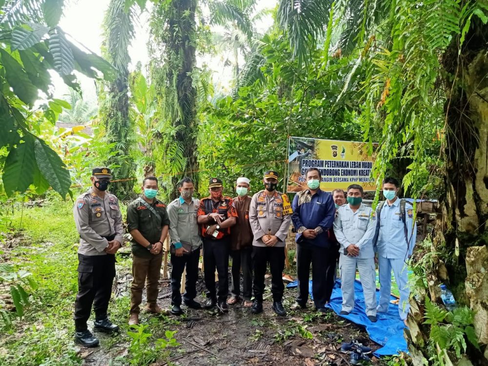 MERANGIN - Pada hari Kamis (28/1/2021) pukul 08.30 WIB Kapolres Merangin AKBP Irwan Andy Purnamawan, didampingi oleh Kapolsek Tabir Iptu Zuhri Muhammad, Kasat Binmas AKP Nursan S dan KBO Sat Intelkam Polres Merangin Ipda Fajar Nugroho telah melaksanakan kegiatan pemberian bantuan 10 Unit Stuk / Kotak Lebah Madu berikut koloni lebah dan Alat Pelindung diri untuk memanen madu kepada Kelompok Tani lebah madu yang baru dibentuk di desa Sumber Agung, Kecamatan Margo Tabir, Kabupaten Merangin. Kegiatan dilaksanakan dalam rangka menindak lanjuti Program Ternak Lebah Madu Polres Merangin untuk menanggulangi permasalahan penambangan emas tanpa Izin (PETI) dan mendongkrak ekonomi masyarakat di masa Pandemi Covid-19 serta memberikan solusi ekonomi kreatif kepada masyarakat terutama bagi para pelaku PETI yang sudah ditertibkan oleh Polres Merangin Dalam Sambutannya Kepala Desa Sumber Agung mengucapkan terimakasih kepada Kapolres Merangin yang sudah memperhatikan warga desa Sumber Agung dan memberikan solusi atas permasalahan yang dihadapi masyarakat saat ini dengan memberikan bantuan kotak lebah madu berikut koloni dan APDnya. Ketua Kelompok Tani lebah madu Mekar Sari desa Sumber Agung yang hadir di lokasi sangat mengapresiasi langkah Polres Merangin bekerjasama dengan KPHP Merangin yang telah menciptakan program ternak lebah madu dan optimis bahwa program ini akan berhasil untuk mengangkat ekonomi masyarakat. Sedangkan Kepala KPHP Merangin Rusnal menyampaikan bahwa untuk keberhasilan program ini maka seluruh penyuluh lapangan KPHP akan memberikan pendampingan secara ketat kepada para kelompok Tani yang sudah terbentuk. Mengakhiri kegiatan tersebut Kapolres Merangin menyampaikan, nahwa Peternakan lebah madu ini adalah salah satu program utama Polres Merangin dari beberapa program yang akan dicanangkan oleh Polres Merangin sebagai upaya untuk menanggulangi masalah PETI yang terjadi di Kabupaten Merangin dengan cara memberi solusi dan mendongkrak perekonomian masyarakat. "Untuk merubah pola pikir / mindset masyarakat agar tidak melakukan aktivitas PETI karena masih banyak potensi lain yang dapat dimanfaatkan untuk mengangkat perekonomian masyarakat tanpa harus melakukan kegiatan yang dapat merusak alam," tegas Kapolres. Selesai menyampaikan sambutan selanjutnya Kapolres Merangin *menyerahkan bantuan 10 Unit Stuk / Kotak Lebah Madu berikut koloni lebah dan APD untuk memanen madu kepada Kelompok Tani lebah madu* serta berharap program ini bisa menjadi Matahari yang dapat menyinari perekonomian masyarakat desa Sumber Agung.