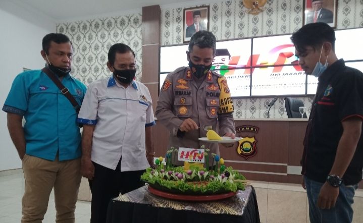 MERANGIN - Kapolres Merangin AKBP Irwan Andy Purnamawan bersama wartawan yang tergabung dalam Persatuan Wartawan Indonesia (PWI) Merangin, Ikatan Wartawan Online (IWO) Merangin, Forum Wartawan Merangin (Forwam) dan Persatuan Wartawan Merangin (PWM), Selasa (9/2/2021) pagi memperingati Hari Pers Nasional (HPN) ke-36 diaula Mapolres Merangin. Hari Pers Nasional di Merangin tahun ini, ditandai dengan pemotongan Tumpeng oleh Kapolres Merangin AKBP Irwan Andy Purnamawan dan diberikan kepada jurnalis termuda di Merangin atas nama Romandani. Dalam sambutanya Kapolres Merangin, Irwan Andy Purnamawan mengatakan, mewakili Polres Merangin mengucapkan selamat Hari Pers Nasional ke-36 tahun 2021, dan berharap indan pers selalu dalam keadaan sehat serta sukses dalam menjalankan tugas kewartawanan. "Saya Kapolres Merangin mewakili Polres Merangin mengucapkan selamat Hari Pers Nasional ke-36 Tahun 2021 disertai ucapan terimakasih kepada para wartawan yang telah bekerjasama dengan baik selama ini," kata Kapolres Merangin. Dalam kegiatan Hari Pers Nasional tahun ini selain dihadiri wartawan yang tergabung dalam berbagai organisasi kewartawanan, juga tampak hadir Kasat Intel Iptu Tarjono, SH. MH dan Kasubag Humas Polres Merangin Iptu Idih. Mewakili rekan-rekan sesama wartawan Merangin, wartawan senior Donisobri dalam sambutanya mengatakan, sangat mengapresiasi kegiatan HPN tahun 2021 yang diselenggarakan di Mapolres Merangin. Meski tidak semua wartawan di Merangin dapat hadir, demi menjaga protokol kesehatan, kegiatan HPN di Merangin berjalan sukses dan sederhana. "Atas nama wartawan di Merangin kami mengucap ribuan terimakasih dan penghargaan yang setinggi-tingginya kepada Kapolres Merangin yang telah mengadakan kegiatan Hari Pers Nasional ke-36 tahun 2021," tandasnya.Penulis: Doni Sobri