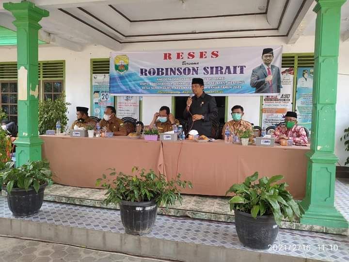 Salah satunya adalah Robinson Sirait Anggota DPRD Muaro jambi dari Fraksi PAN. Dia melaksanakan kegiatan reses II di desa Suka Makmur, Kecamtan Sungai Bahar Daerah Pemilihan (Dapil IV) Mestong-Sungai Bahar guna menyerap aspirasi dari masyarakat pada Selasa  (16/2) kemarin.