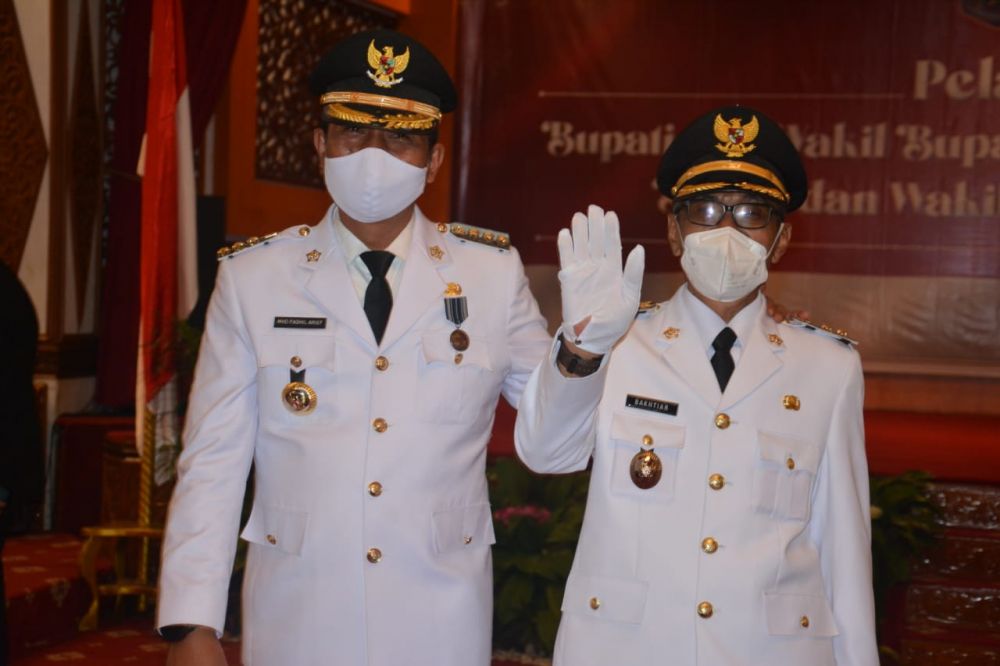 JAMBI - Bupati dan Wakil Bupati Terpilih kabupaten Batanghari hasil Pilkada serentak 2020, Muhammad Fadhil Arief, SE dan H. Bakhtiar. SP secara resmi telah dilantik oleh Pj Gubernur Jambi, Dr. Hari Nur Cahya Murni di rumah dinas Gubernur Jambi, Jum'at (26/02/2021).