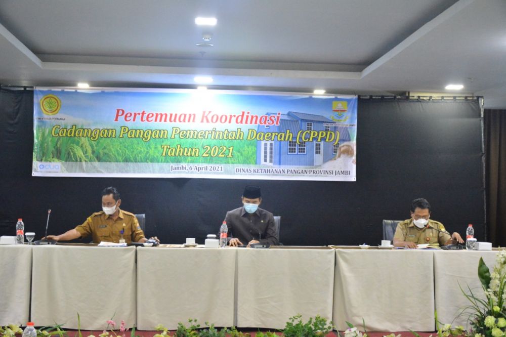 JAMBI – Ketua DPRD Provinsi Jambi, Edi Purwanto menjadi narasumber dalam Pertemuan Koordinasi Cadangan Pangan Pemerintah Daerah (CPPD) tahun 2021 di Hotel O Dua Weston Jambi, Selasa (6/4/2021).