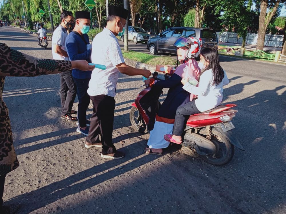 MERANGIN - Kali ini Satuan Narkoba Polres Merangin membagikan takjil dan masker kepada masyarakat yang melintas di depan Polres Merangin, Minggu sore (18/04/21). Kegiatan tersebut selain memberikan takjil, juga memberikan himbauan serta memberikan masker gratis kepada pengendara yang melintas. Kapolres Merangin AKBP Irwan Andy Purnamawan S.I.K melalui Kasat Narkoba Polres Merangin AKP Ismail S.H mengatakan, bahwa kegiatan ini merupan bentuk kepedulian Polri khususnya Polres Merangin kepada masyarakat. "Kegiatan ini merupakan bentuk kepudulian kami terhadap masyarakat sekalian bagi bagi rezeki dengan masyarakat," ucap AKP Ismail. AKP Ismail juga menyebutkan bahwa dalam kegiatan ini berkerja sama dengan pemilik kedai kopi aren. Kegiatan tersebut selain bagi bagi masker dan takjil, Polres Merangin juga mengelar aksi operasi keselamatan Siginjai 2021 dan operasi pekat di Polres Merangin. "Kita juga memberikan himbauan kepada masyrakat, tentang pentingnya tertib berlalu lintas, jadi keselamatan dalam berkendaraan," tandas AKP Ismail, SH.