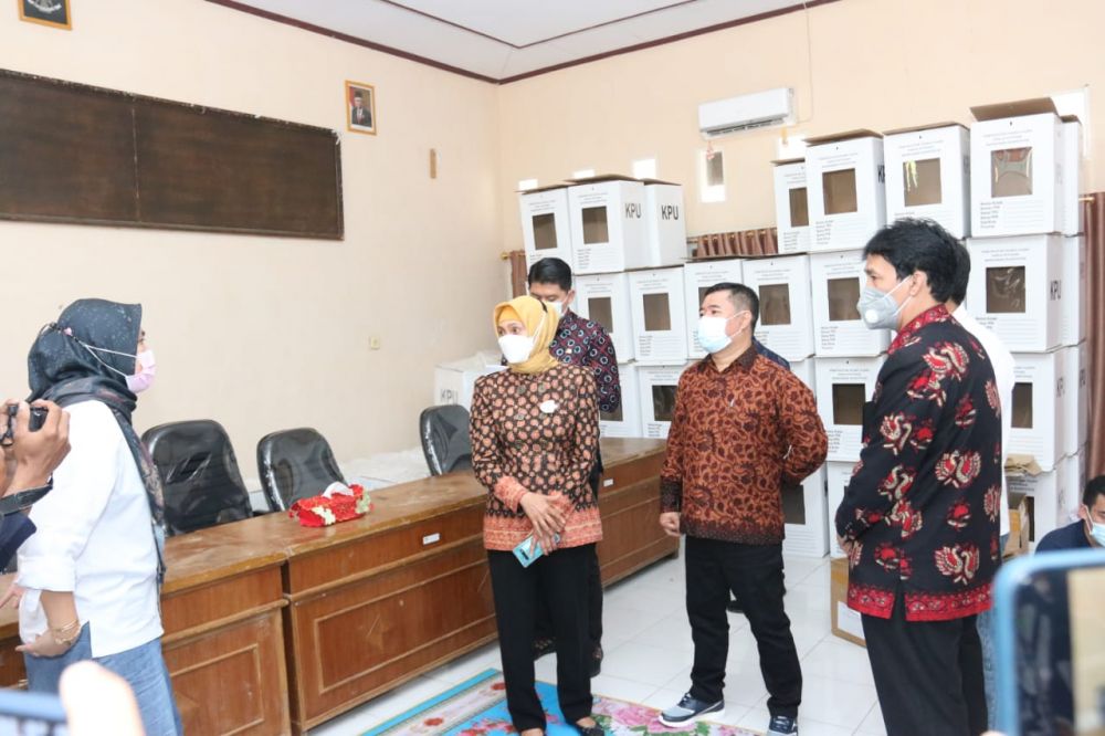 MUAROJAMBI - Pemerintah Provinsi (Pemprov) Jambi berupaya mendukung persiapan dan kesiapaN penyelenggaraan Pemungutan Suara Ulang (PSU) Pemilihan Gubernur dan Wakil Gubernur Jambi. Untuk itu, Pemprov Jambi telah melakukan berbagai langkah koordinatif dan sinergis, baik dengan penyelenggara PSU yakni KPU dan Bawaslu maupun dengan Forum Komunikasi Pimpinan Daerah (Forkopimda) Provinsi Jambi. Sejalan dengan upaya untuk mempersiapkan PSU Pemlilihan Gubernur dan Wakil Gubernur Jambi dengan sebaik-baiknya, Penjabat (Pj) Gubernur Jambi Dr.Hari Nur Cahya Murni,M.Si meninjau logistik Komisi Pemilihan Umum (KPU) Kabupaten Tanjung Jabung Timur dan Muaro Jambi, Kamis (20/5/2021) siang.