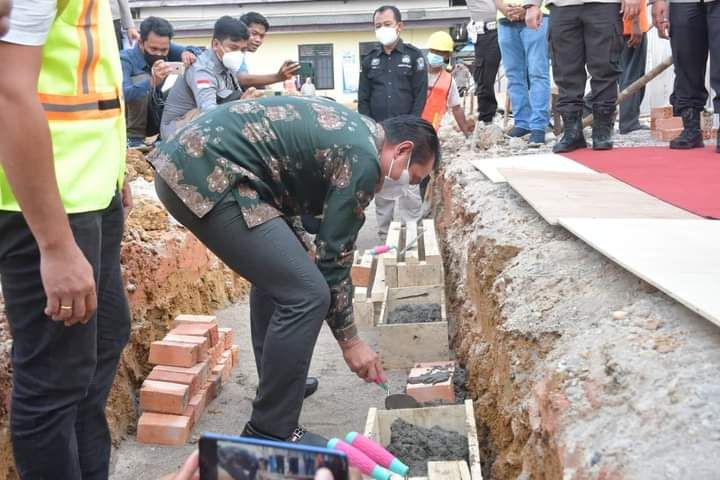 MUARABULIAN - Bupati Batanghari, Muhammad Fadhil Arief, SE pada Kamis (10/6/2021) secara langsung menghadiri kegiatan peletakan batu pertama pembangunan gedung Polres Batanghari.