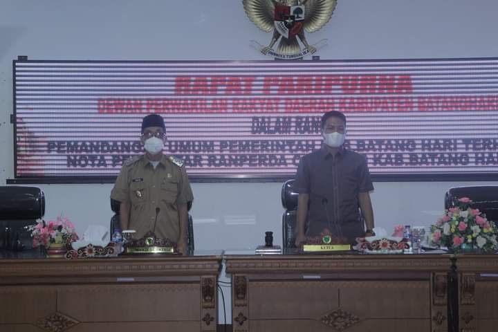 Rapat paripurna kali ini dengan agenda penyampaian pemandangan umum Pemerintah Kabupaten Batanghari terhadap Nota Pengantar Rancangan Peraturan Daerah (Ranperda) Covid-19.