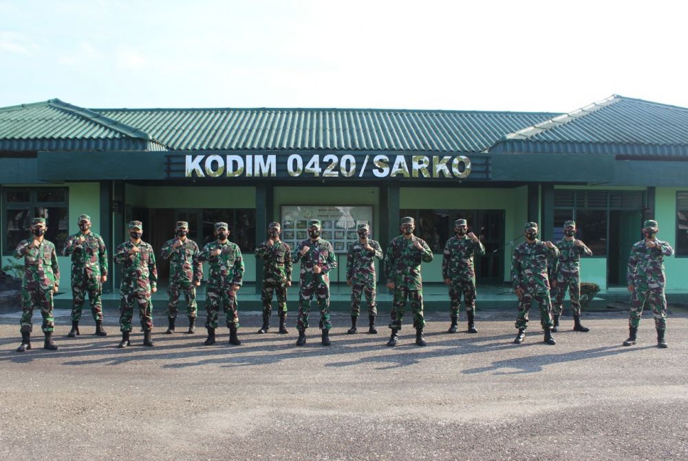 Sebagai prajurit TNI AD yang pernah berdinas dan bertugas di Kodim 0420/Sarko, saya harapkan kalian bisa menjaga nama baik Kodim 0420/Sarko dan perlu kalian ketahui kalian adalah duta dari Kodim 0420/Sarko, sehingga nama baik harus tetap di jaga," tutup Dandim.