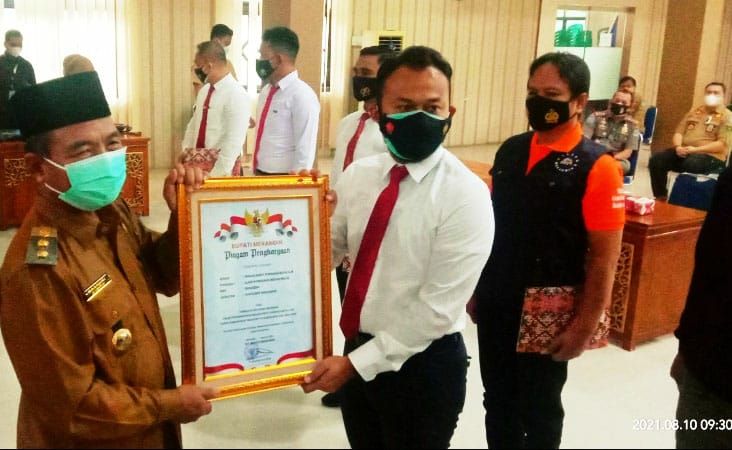 MERANGIN - Gubernur Jambi H Al Haris dan Plt Bupati Merangin H Mashuri, memberi penghargaan kepada jajaran Polres Merangin, atas keberhasilannya dalam mengungkap secara cepat kurang dari 24 jam, pelaku kasus pembunuhan Plt Kaban BPBD Merangin. Piagam tersebut secara simbolis diserahkan Plt bupati kepada Polres Merangin AKBP Irwan Andy Purnamawan diwakili Kasat Reskrim AKP Indar Wahyu, pada acara resmi yang berlangsung di Pola Utama Kantor bupati Merangin, Selasa (10/8/21). ‘’Selamat kepada jajaran Polres Merangin dan kami memberikan apresiasi yang setinggi-tingginya, dengan gerak cepat dapat menangkap pelaku pembunuh Kaban BPBD kami Alm Pak H Syafri,’’ ujar Plt Bupati. Diakui H Mashuri, piagam yang diberikan itu tidak setimpal dengan apa yang sudah dilakukan jajaran Polres Merangin, dalam mengungkap pelaku kasus pembunuhan Plt Kaban BPBD Merangin Alm H Syafri. Namun demikian lanjut Plt bupati, penghargaan itu setidaknya dapat menjadi motivasi bersama dalam kinerja selanjutnya. Polres Merangin tidak akan surut dalam memberantas tindak kejahatan dan bertindak untuk mengayomi masyarakat. Ada sebanyak 14 orang yang menerima penghargaan yang diberikan Gubernur Jambi dan Bupati Merangin tersebut, Kapolres Merangin AKBP Irwan Andy Purnamawan, Kasat Reskrim AKP Indar Wahyu dan KBO Reskrim Ipda Al Imron. Selain itu, Kaur Identifikasi Aipda Widodo, Kanit Pidum Satreskrim Ipda Frans Billy Nadapdap dan Penyidik sebanyak empat orang, Bripka Jimmy Laorensus, Briptu M Wiratama Patrisman, Bripda Kalam Robero Pasaribu dan Aipda Dede Sulaiman. Tidak hanya itu, penghargaan bergengsi itu juga diberikan kepada Opsnal sebanyak lima orang, Aipda Yoyok Purwanto, Aipda Azhari Ananda Putra, Briptu Anton Parmanto, Briptu Nanda Gusti Kurniawan dan Briptu Adiguna Antero Siagian. Kapolres Merangin melalui Kasat Reskrim AKP Indar Wahyu, mengungkapkan rasa terimakasih setinggi-tingginya kepada Gubernur Jambi dan Bupati Merangin, atas diberikannya piagam tersebut. ‘’Piagam ini akan menjadi motivasi kerja kami dalam melindungi dan mengayomi masyarakat. Sinergitas dengan Pemkab Merangin akan terus dilakukan, terlebih terkait penanggulangan dan pencegahan Covid-19 level empat,’’ ujar Kasat Reskrim.