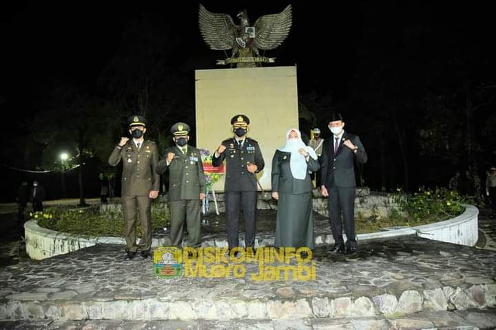 MUAROJAMBI - Upacara renungan suci untuk memperingati HUT RI ke 76 tahun 2021digelar di Taman Makam Pahlawan Kusuma Bhakti Muaro Jambi, Selasa, 17/8/2021 dini hari.