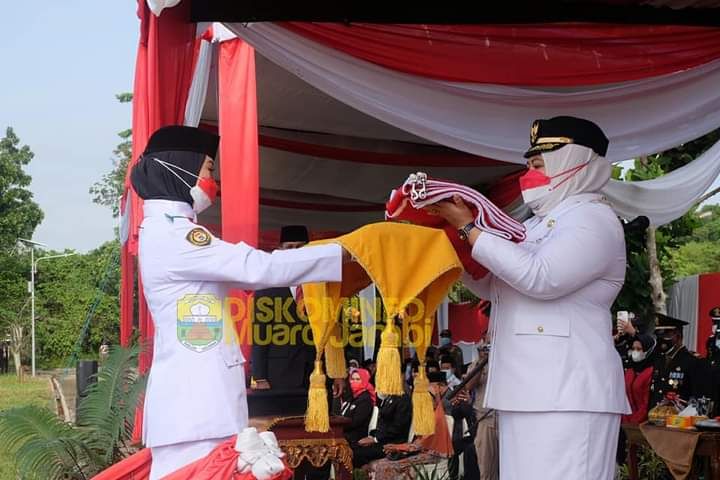 MUAROJAMBI - Bupati Muaro Jambi Hj. Masnah Albusyro, SE, M.Tr.IP menjadi Inspektur Upacara Penaikan Bendera pada Hari Ulang Tahun ke-76 Kemerdekaan Republik Indonesia, yang dipusatkan di Halaman Kantor Bupati Bukit Cinto Kenang, Selasa pagi (17/8).