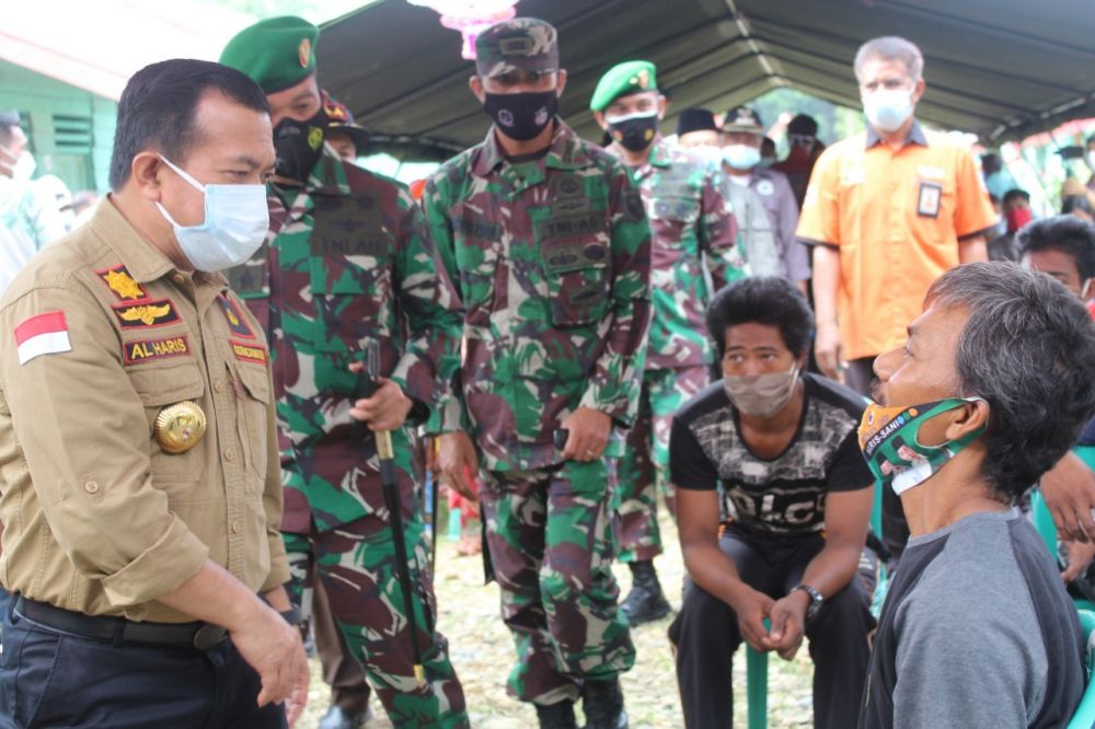 MERANGIN - Sabtu (28/8/21) TNI AD melalui Kodim 0420/Sarko kembali mengadakan serbuan vaksinasi bagi masyarakat.Vaksinasi sebagai anti bodi kali ini sedikit bberbeda dengan serbuan vaksinasi sebelumnya yang di selenggarakan oleh Kodim 0420/Sarko di kerenakan serbuan vaksinasi kali ini di pertuntuk warga Suku Anak Dalam (SAD) di wilayah teritotial Kodim 0420/Sarko. Di jelaskan Dandim 0420/Sarko Letkol Inf Tomi Radya Diansyah Lubis S.A.P., M. Han bahwa semenjak di gulirkannya serbuan vaksinasi bagi masyarakat, kami dari Kodim 0420/Sarko dengan mengedepan tenaga medis/kesehatan Pos Kesdim 02.10.14 Bangko sudah sering melakukan kegiatan serbuan vaksinasi bagi masyarakat baik itu langsung ke wilayah-wilayah dan juga kami adakan di Kodim 0420/Sarko dan Pos Kesdim 02.10.14 yang bertempat di Kota Bangko Kabupaten Merangin Provinsi Jambi. "Adapun kegiatan serbuan vaksinasi oleh Kodim 0420/Sarko kali ini berlokasi di kawasan Suku Anak Dalam (SAD) Desa Sungai Ulak Kecamatan Nalo Tantan Kabupaten Merangin. Serbuan vaksinasi ini di peruntukan bagi warga SAD, dan ini juga bagian dari kepedulian TNI kepada masyarkat terpencil di wilayah-wilayah seperti warga SAD yang ada di Kabupaten Merangin, perlu di ketahui juga bahwasanya mereka (warga SAD) juga membutuhkan dan harus juga mendapat perhatian dari pemerintah seperti yang di laksanakan oleh Kodim 0420/Sarko bagian dari mensukseskan dan mendukung program pemerintah dalam serbuan vaksinasi bagi masyarakat dalam upaya memberikan anti bodi kekebalan terhadap virus covid 19," terang Dandim. Serbuan vaksinasi kali ini di kawasan SAD Merangin juga di hadiri langsung Gubernur Jambi H. Al Haris S.Sos., MH, Plt Bupati Merangin H. Mashuri S.Pd., MM, Danrem 042/Gapu Brigjen TNI M. Zulkifli S.I.P., MM, Kajati Jambi Sapta Subrata SH, Dandim 0420/Sarko Letkol Inf Tomi Radya Diansyah Lubis S.A.P., M. Han, Kapolres Merangin di wakil Waka, Ketua DPRD Merangin Herman Efendi ST., M.M, Kajari Merangin Dr.Raden Roro Theresia Tri Widorini, SE., Ak., M.H, serta rombongan lainnya. Gubernur Jambi dalam keterangan persnya menuturkan Merangin sudah ada penurunan angka penularan virus covid 19, akan tetapi masyarakat di himbau untuk tetap manjalankan mprotokol kesehatan. "Saya mengapresiasi berjalannya kegiatan serbuan vaksinasi oleh Kodim 0420/Sarko yang di peruntukan untuk warga Suku Anak Dalam (SAD) wilayah Merangin serta bersinergi dengan Pemerintah Daerah dan pihak instansi lainnya, ini perlu di lanjutkan untuk menjangkau masyarakat yang berada jauh di pelosok ujung wilayah Merangin," tutup Gubernur Jambi Al Haris. Dandim menegaskan pelaksanaan serbuan vaksinasi di Suku Anak Dalam ini tetap mempedomasi protokol kesehatan, serta dalam kegiatan ini juga di laksanakan kegiatan bakti sosial berupa pemberian sembako dan pendistribusian beras dari Korem 042/Gapu, kegiatan berjalan aman dan sukses, terang Dandim.Penulis: Doni Sobri