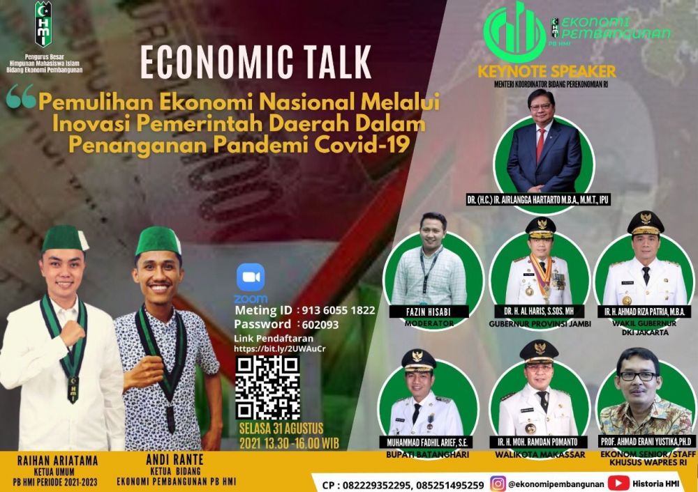Webiner PB HMI tersebut mengangkat tema pemulihan ekonomi nasional melalui inovasi Pemerintah Daerah dalam penanganan pandemi Covid-19.
