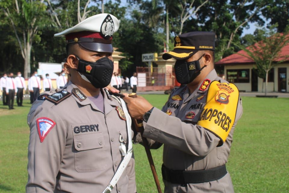 Dihadiri oleh Waka Kompol Novrizal. S. Sos. MH, Kabag Ops Kompol Rinto. H. Simbolon. Kasat Lantas AKP. Nafrizal, SH, MH para PJU dan personil.