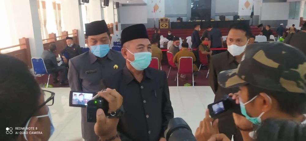 MERANGIN - Bupati Merangin, H. Mashuri menyampaikan pengantar Rancangan Kebijakan Umum Perubahan Anggaran (KUPA) dan Rancangan Perunahan Prioritas Plafon Anggaran Sementara (Perubahan-PPAS) Kabupaten Merangin anggaran 2021. KUPA dan Perubahan-PPAS itu disampaikan bupati dihadapan unsur pimpinan dan para anggota DPRD Merangin, pada rapat paripurna Dewan di Ruang Rapat Utama Gedung DPRD Merangin, Selasa (28/9/21) ‘’KUPA Kabupaten Merangin tahun anggaran 2021 disusun disaat pandemic Covid-19 yang masih melanda. Dimana sebelumnya telah dilakukan penyesuaian, baik pendapatan, maupun belanja daerah,’’ ujar Bupati. Dipastikan bupati, semua itu akan berdampak pada capaian kinerja Pemerintah Kabupaten Merangin 2021. KUPA ini juga sebagai pedoman bagi perangkat daerah untuk menyusun anggaran yang akan dianggarkan dalam perubahan anggaran tahun berjalan. Untuk pendapatan belanja daerah dalam rancangan Perubahan-PPAS. mengalami peningkatan sebesar Rp 19.395.175.511,- dari target awal yang telah ditetapkan pada APBD murni sebesar Rp 1.367.122.049,- sehingga menjadi sebesar Rp 1.386.517.224.570,-. Sedangkan untuk belanja daerah pada APBD murni sebesar Rp. 1.509.156.526.788,- setelah perubahan menjadi sebesar Rp 1.568.844.646.496,- mengalami peningkatan sebesar Rp. 59.688.119.708,-. Selain itu terang bupati, untuk pembiayaan daerah pada APBD Murni sebesar Rp 142.034.477.729,-, setelah perubahan menjadi sebesar Rp 182.327.421.926,- ‘’Artinya mengalami peningkatan sebesar Rp 40.292.944.197,-,’’ jelas Bupati.