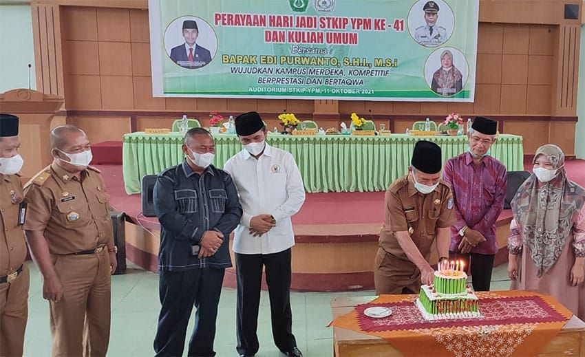 MERANGIN - Sebagai kampus tertua di Kabupaten Merangin, perjalanan STKIP YPM Merangin sangat panjang, banyak meluluskan alumni-alumni terbaik dan banyak menciptakan orang-orang sukses. Hal tersebut ditegaskan Bupati Merangin H Mashuri, usai menghadiri peringatan hari jadi STKIP YPM Merangin di Auditorium kampus yang berada di kawasan Talang Kawo Bangko tersebut, Senin (11/10/21). ‘’Saya merupakan salah satu alumni dari STKIP YPM Merangin tahun 1994. Selamat ulang tahun ke-41 Kampusku. Mudah-mudahan STKIP YPM Merangin kedepannya semakin jaya,’’ujar Bupati. Para alumni STKIP YPM Merangin jelas bupati, banyak berkarier di Pemerintahan. Tidak hanya di Kabupaten Merangin, tapi juga di luar Merangin. Tidak sedikit pula alumni STKIP YPM Merangin yang sukses di jalur swasta. Intinya tegas bupati, para alumni STKIP YPM Merangin merupakan generasi yang mampu besaing baik di tingkat daerah, maupun nasional. Ini artinya STKIP YPM Merangin merupakan sekolah tinggi yang bermutu. STKIP YPM Merangin lanjut bupati, pernah mengalami masa kejayaannya pada tahun ajaran 2000, dimana waktu itu jumlah mahsiswanya mencapai lebih dari 2000 orang dari berbagai penjuru Provinsi Jambi. Untuk itu bupati minta para mahasiswa dan mahasiswi STKIP YPM Merangin, harus mampu mewujudkan Kampus STKIP YPM Merangin sebagai kampus merdeka, kompetitif, prestasi dan bertaqwa.