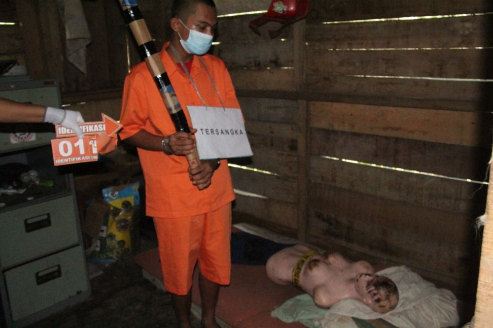 Pada rekonstruksi ini, polisi menghadirkan pelaku Arji Pratama Bin Azwar Rizal (23), warga asal RT 06 Desa Karmeo, Kecamatan Bathin XXIV, Kabupaten Batanghari.