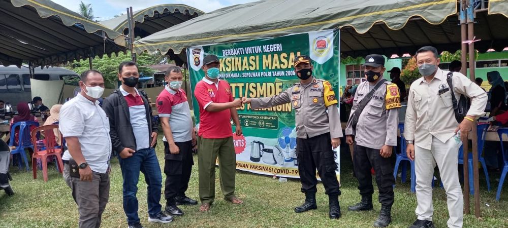 MERANGIN - Dihari yang cerah Jumat (12/11/21) dilapangan Sepakbola Desa Sumber Agung Kec Margo Tabir telah dilaksanakan Vaksinasi untuk masyarakat umum. Giat Vaksinasi merupakan Wujud Bakti untuk Negeri dari Alumni DIKMABA / SEPOLWAN POLRI ANGKATAN TAHUN 2000 atau yang lebih dikenal dengan Letting DTT/SMDE dari Polres Merangin. Antusias masyarakat sangat baik, hal ini terlihat dari jumlah masyarakat yang datang cukup banyak, menurut Ketua DTT -SMDE  Polres Merangin Aipda Edi Setiawan mengatakan "Terimakasih kami ucapkan kepada semua pihak atas sukses dan terselenggaranya kegiatan Vaksinasi ini, DTT -SMDE Polres Merangin berkomitmen untuk ikut serta membantu sukseskan target Capaian Vaksinasi Nasional" terangnya. Kami menyediakan berbagai macam doorprise untuk masyarakat yang ikut Vaksin, terimaksih juga untuk kekompakan DTT - SMDE Polres Merangin, Semoga kedepan semakin solid," ucapnya. Sementara itu menurut Wulan, staf Pemerintah Desa Sumber Agung, Kecamatan Margo Tabir mengucapkan terimakasih kepada Polres Merangin khususnya DTT / SMDE  atas terselenggaranya  kegiatan vaksinasi "Kami mendukung kegiatan Vaksinasi untuk ciptakan hert imunity ditengah masyarakat, semoga DTT - SMDE Polres Merangin sukses selalu dalam menjalankan tugas" ucapnya. Masyarakat sangat antusias mengikuti vaksin. "Ada masyarakat Desa Tanjung Rejo dan Desa Tegal Rejo, masyarakat sangat ramai dan antusias kebetulan lokasi kegiatan setrategis," tandasnya.