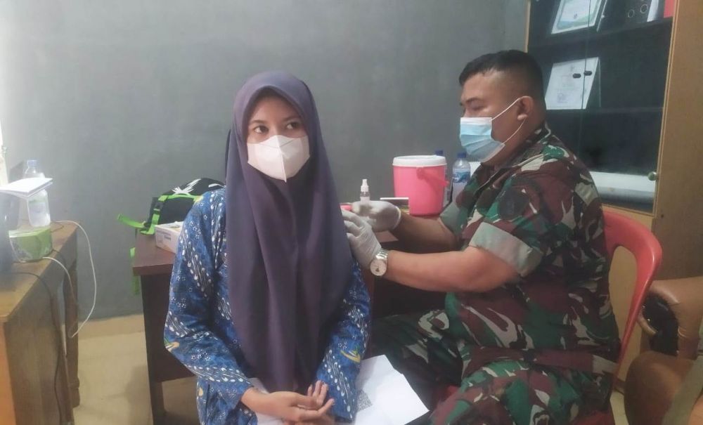 MERANGIN - Untuk percepatan vaksinasi secara nasional menuju Indonesia sehat khususnya di Kabupaten Merangin dan Kabupaten Sarolangun Provinsi Jambi, Tim Mobile Vaksinator Kodim 0420/Sarko terus gencar melakukan vaksinasi di desa-desa.