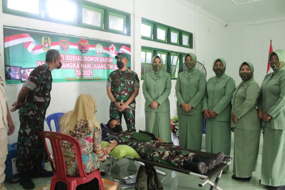 MERANGIN - Kamis ( 09/12/21), Dalam rangka memperingati hari juang kartika (HJK) TNI-AD tahun 2021 Kodim Kodim 0420/Sarko gelar kegiatan bhakti sosial donor darah bertempat di Aula Ahmad Yani Makodim 0420/Sarko Jln Lintas Sumatera Km 3,5 Keluarahan Dusun Bangko, Kecamatan Bangko, Kabupaten Merangin. Kegiatan tersebut dilaksanakan Kodim 0420/Sarko bekerjasama dengan Tim Medis dari Laboratorium Unit Transfusi Darah (UTD) Rumah Sakit Umum Kolonel Abunjani Bangko yang di dampingi Polkes 02.10.14 Sarko yang diikuti oleh perwakilan masing masing Koramil jajaran, PNS dan Persit Kartika Chandra Kirana Cabang XXVII Dim Sarko. Saat dikonfirmasi Dandim 0420/Sarko Letkol Inf Tomi Radya Diansyah Lubis, S.A.P., M.Han mengatakan bahwa kegiatan ini dalam rangka Hari Juang Kartika TNI AD tahun 2021. "Donor darah ini kami laksanakan dalam rangka memperingati Hari Juang Kartika TNI AD 2021. Semoga kegiatan bakti sosial ini bisa menambah jumlah stok darah di PMI dan bisa dimanfaatkan untuk masyarakat khususnya di wilayah kabupaten Merangin," ujar Dandim. Ia mengatakan donor darah ini merupakan program dan wujud kepedulian terhadap sesama bagi prajurit dan PNS serta menjadi motivasi untuk melakukan hal yang sama di masa pandemi Covid-19. Di masa pandemi ini, Kodim Sarko ikut memberikan peran dalam menjaga kestabilan kesehatan khususnya di wilayah Kabupaten Merangin," tandasnya.