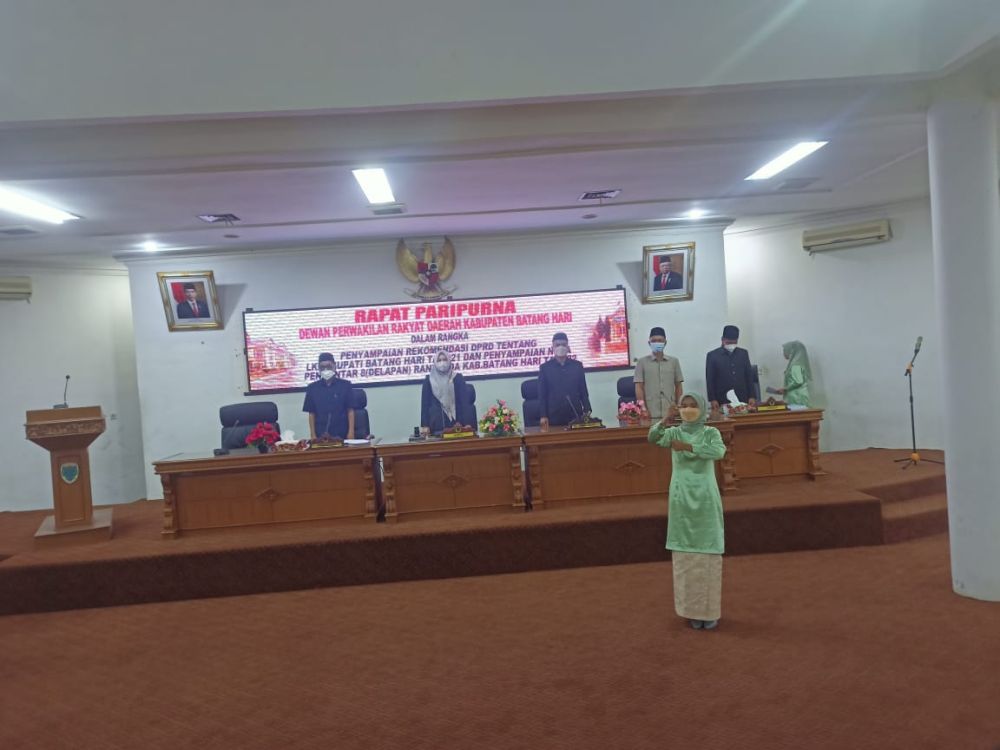 Untuk diketahui rekomendasi DPRD Batanghari terhadap LKPJ Bupati Batanghari tahun anggaran 2021 tersebut, secara langsung disampaikan anggota DPRD Batanghari.