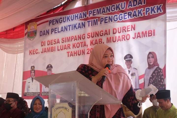 Muaro Jambi - Pengukuhan Pemangku Adat dan Pelantikan Ketua Tim Penggerak PKK Desa Sungai Duren Kecamatan Jambi Luar Kota, dihadiri langsung Bupati Muaro Jambi Hj. Masnah Busro.