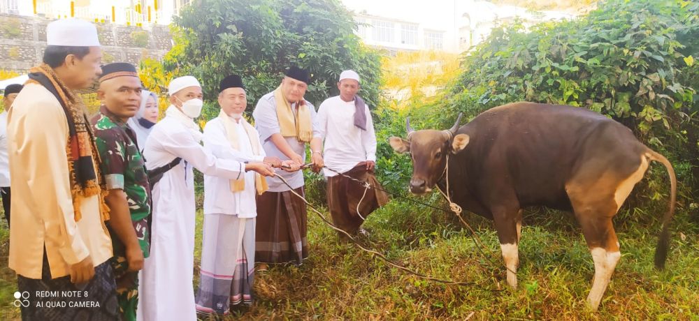 MERANGIN - Meskipun sudah ada kelonggaran pada pandemic Covid-19, namun tidak ada takbiran keliling pada malam Lebaran Idul Adha 1443 H di Kabupaten Merangin, Sabtu malam (09/7/22). Bupati Merangin H Mashuri, memusatkan Takbiran Idul Adha 1443 H di Kabupaten Merangin pada satu titik, di jalur depan Kantor Bupati Merangin. Acara bertajuk ‘Gebyar Idul Adha 1443 H’ itu, tidak hanya dihadiri para pejabat tapi juga masyarakat Bangko. ‘’Kita tetap mematuhi protokol kesehatan pencegahan Covid-19. Mari kita kumandangkan takbir, tahmid dan tahlil Lebaran Idul Adha 1443 H di masjid-masjid, mushola-mushola, pesantren-pesantren dan di titik Gebyar Takbiran ini,’’ujar Bupati. Gebyar Takbiran Idul Adha 1443 H tersebut, ditandai dengan pemukulan beduk oleh bupati, dilanjutkan Ketua DPRD Merangin H Herman Effendi, Forkopimda lainnya dan sejumlah pejabat yang hadir. Pada kesempatan itu, bupati mengajak seluruh masyarakat Kabupaten Merangin pada esok harinya Minggu (10/7/22), untuk Sholat Idul Adha 1443 H di masjid-masjid dan mushola-mushola terdekat. Sebelumnya pada Sabtu pagi (09/7/22), bupati telah menyerahkan enam ekor hewan kurban jenis sapi kesejumlah masjid dalam Kota Bangko, untuk disembelih usai pelaksanaan Sholat Idul Adha 1443 H. H Mashuri menjamin semua hewan kurban di Kabupaten Merangin dalam kondisi aman untuk dikonsumsi. ‘’Semua hewan kuban itu sudah disertifikasi kesehatannya, semua dalam kondisi sehat,’’terang Bupati.Penulis: Doni Sobri
