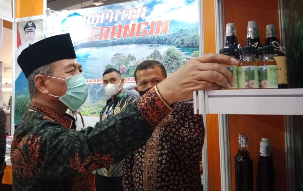 Sementara itu usai menyaksikan stan Kabupaten Merangin, bupati sebelum meninggalkan JCC, sempat menyaksikan data komoditi yang dimiliki masing-masing kabupaten anggota APKASI yang terpajang di depan pintu masuk pameran tersebut.