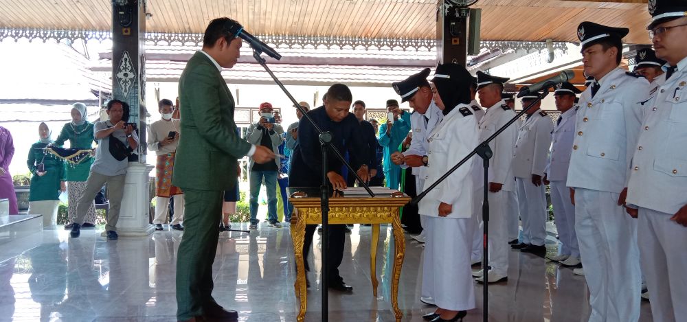 ”Pengalaman Pilkades kemaren, bahwa setelah Pilkades banyak APBDes yang terlambat jadinya. Karena Kades baru sibuk konsolidasi terhadap desa,” kata Bupati Fadhil Arief setelah melantik 34 Penjabat Kades di Serambi rumah dinas Bupati Batanghari,  Selasa (20/9/2022).