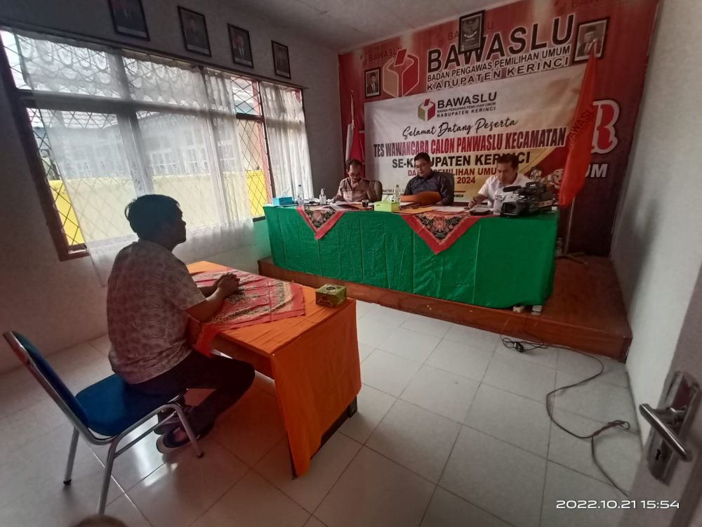 Pelaksanaan tes Wawancara 6 besar calon Panwaslu Kecamatan untuk 18 kecamatan ini dilaksanakan selama 4 hari mulai dari tanggal 20-23 Oktober 2022.