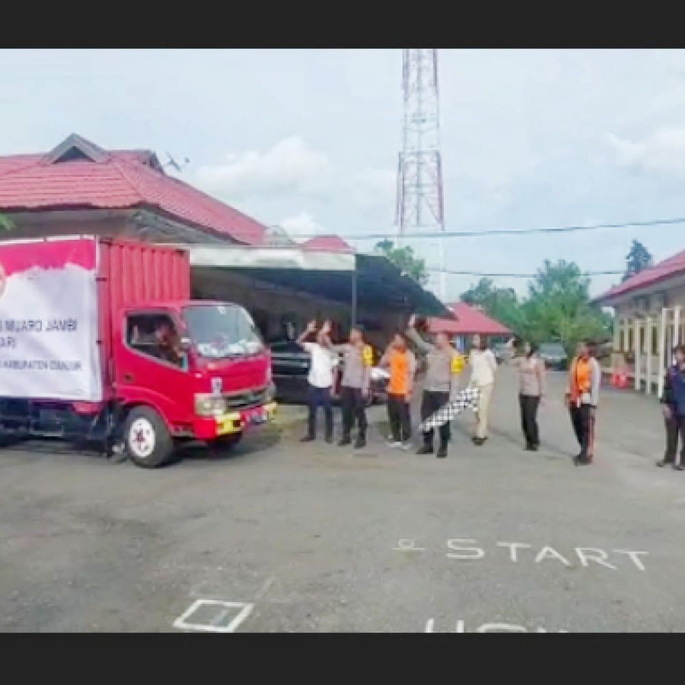 Tampak hadir melepas bantuan tersebut wakapolres, kasat lantas, kasat narkoba, kasat reskrim, serta personel Polres Muaro Jambi.