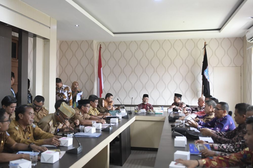 MERANGIN - Bupati Merangin, H. Mashuri didampingi para kepala Organisasi Perangkat Daerah (OPD), memimpin jalannya rapat koordinasi camat se-Kabupaten Merangin 2022, di ruang rapat kerja bupati Merangin, Kamis (8/12/22).