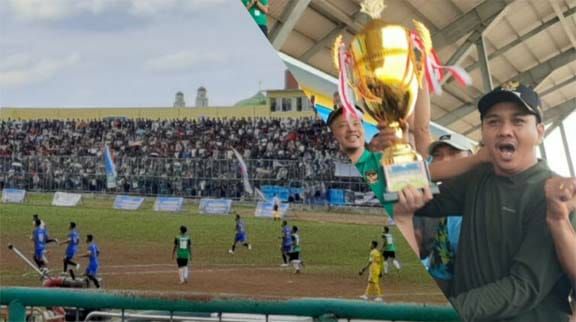 MERANGIN - Kabupaten Merangin resmi menjadi duta bola Provinsi Jambi. Gelar ini resmi disandang, setelah Kesebelasan Merangin FC mampu menjadi juara pertama pada Turnamen Bola Gubernur Cup 2023. Merangin FC berhasil menumbangkan kesebelasan tuan rumah Tebo FC pada pertandingan final yang berlangsung seru di Stadiun Sri Maharaja Batu Kabupaten Tebo, Sabtu sore (28/1/23). ‘’Alhamdulillah tim kita bermain sangat bagus sekali, sehingga dengan kemenangan ini Merangin resmi menjadi dua bola Provinsi Jambi,’’ujar Bupati dibenarkan Wabup Merangin Nilwan Yahya usai pertandingan. Pada babak pertama Merangin FC meskipun sudah bermain cantik, melakukan serangan sampai salah satu pemainnya mendapat kartu merah, tidak mampu mengejar skor Tebo FC 1-0. Skor tersebut tidak berubah sampai berakhirnya babak pertama. Saat turun minum, Wabup Merangin Nilwan Yahya langsung turun ke lapangan, memberi motivasi dan semangat kepada para pemain Merangin FC, yang berkostum warna hijau tersebut. Memasuki babak kedua, bermodal motivasi wabup itu kesebelasan Merangin FC mulai menunjukan pola permainan yang sebenarnya. Ini terbukti pada menit kesembilan pemain Merangin FC Samsudin berhasil membobol gawang lawan sehingga skor 1-1. Skor 1-1 itu rupanya membuat pamain Tebo FC sedikit emosi, sehingga sempat terjadi keributan antar pemain. Setelah sempat disekor beberapa menit akibat keributan itu, lagi-lagi serangan dilakukan Merangin FC yang hanya bermain dengan 10 orang. Agung Supriyanto pemain Merangin FC akhirnya berhasil menambah skor setelah membobol gawang lawan, sehingga skor bertambah 2-1. Selang beberapa menit kemudian, pemain nomor punggung 18 itu kembali mencetak gol kegawang lawan. Tidak terima dengan skor 3-1, para pemain Tebo FC kian garang melakukan serangan, sehingga Masrindi nomor punggung 11 berhasil membalas gol ke gawan Merangin FC, skor menjadi 3-2. Skor 3-2 itu tidak berubah sampai wasil meniup peluit panjang tanda berakhirnya pertandingan. ‘’Benar. Merangin juara Gubernur Cup 2023,’’tegas Wabup sambil mengepalkan jari tangannya. Atas kekalahan itu otomatis Tebo FC hanya mampu menempatkan diri pada posisi kedua Gubernur Cup 2023. Sedangkan urutan ketiga Bungo FC setelah pada Jumat (27/1/23) sukses menumbangkan Tanjungjabung Barat yang puas diurutan keempat.Penulis: Doni Sobri