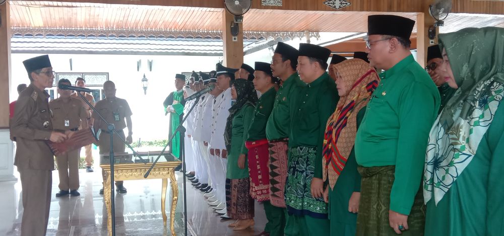 MUARABULIAN - Wakil Bupati Batanghari, H. Bakhtiar, SP melantik dan mengambil sumpah/janji jabatan pejabat struktural dilingkungan Pemkab Batanghari.