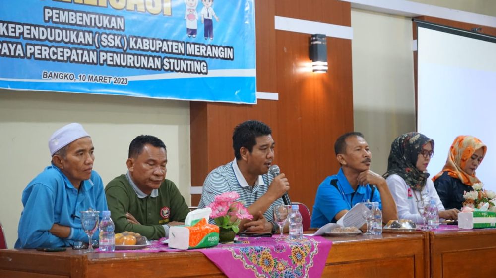 Hal tersebut dikatakan Wabup Merangin Nilwan Yahya saat melakukan acara sosialisasi pembentukan Sekolah Siaga Kependudukan (SSK) Kabupaten Merangin dalam rangka percepatan penurunan Stunting, di Aula Dikbud Merangin, Jumat (10/3/23).