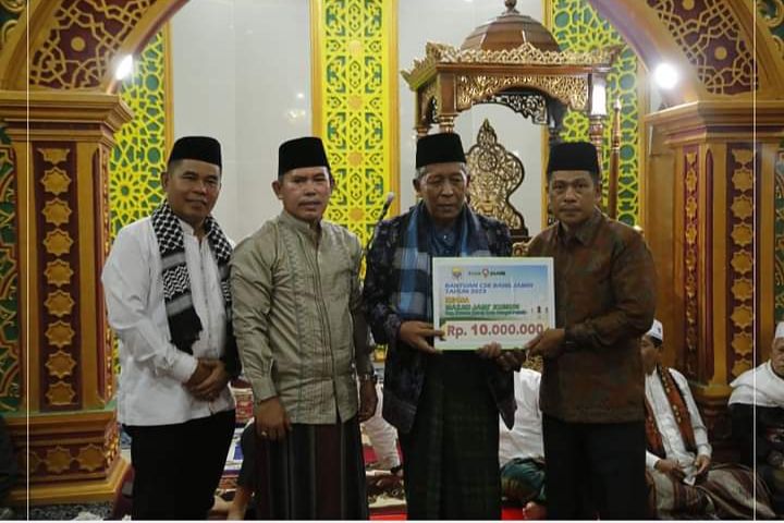 Dalam kegiatan ini Wako Ahmadi bersama Wagub Abdullah Sani juga menyerahkan beberapa bantuan yang diharapkan menjadi salah satu penggerak pembangunan Fisik maupun non Fisik Masjid Jamik Kumun.