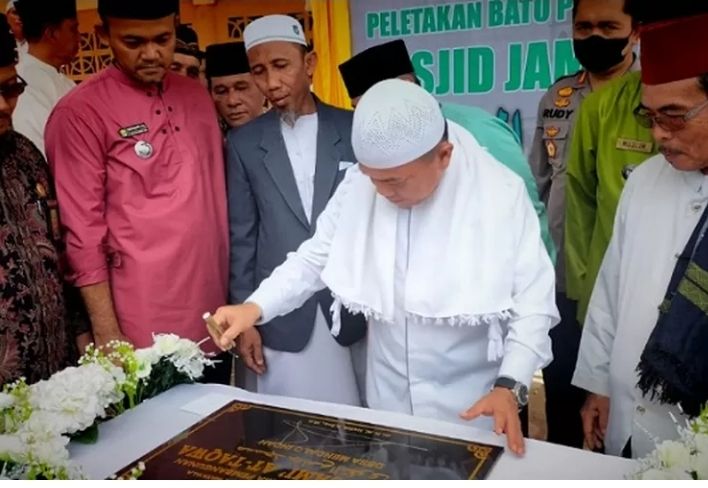 Peletakan batu pertama pembangunan masjid dengan bantuan donatur dan swadaya masyarakat ini dilakukan Al Haris bersama Kepala Desa Mendalo Indah Muslim, Ketua Dewan Kemakmuran Masjid (DKM) Sopia Budi, Imam Masjid Jami At-Taqwa dan Kepala Kanwil Kemenag Muaro Jambi.