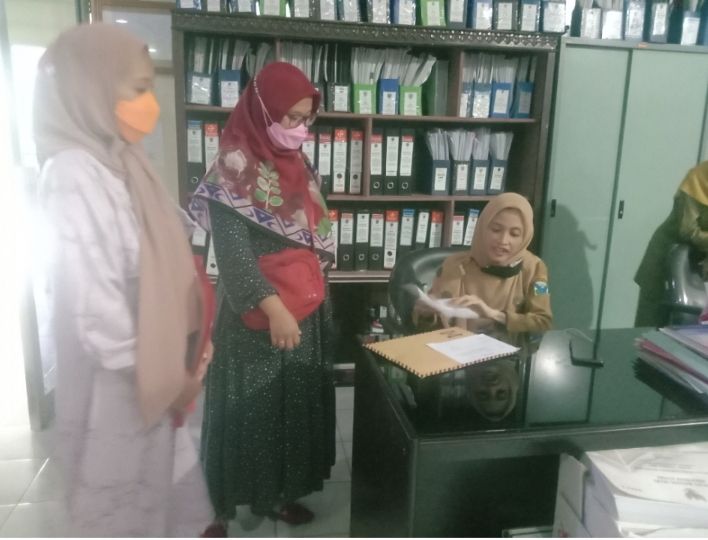 Muniroh dan Isti Qomah saat menyampaikan surat perihal perkembangan dan tindak lanjut pengaduan karyawan atas dugaan pelanggaran PT. Hutan Alam Lestari ke Bagian Hukum Setda Batanghari pada Senin (8/5/2023)....