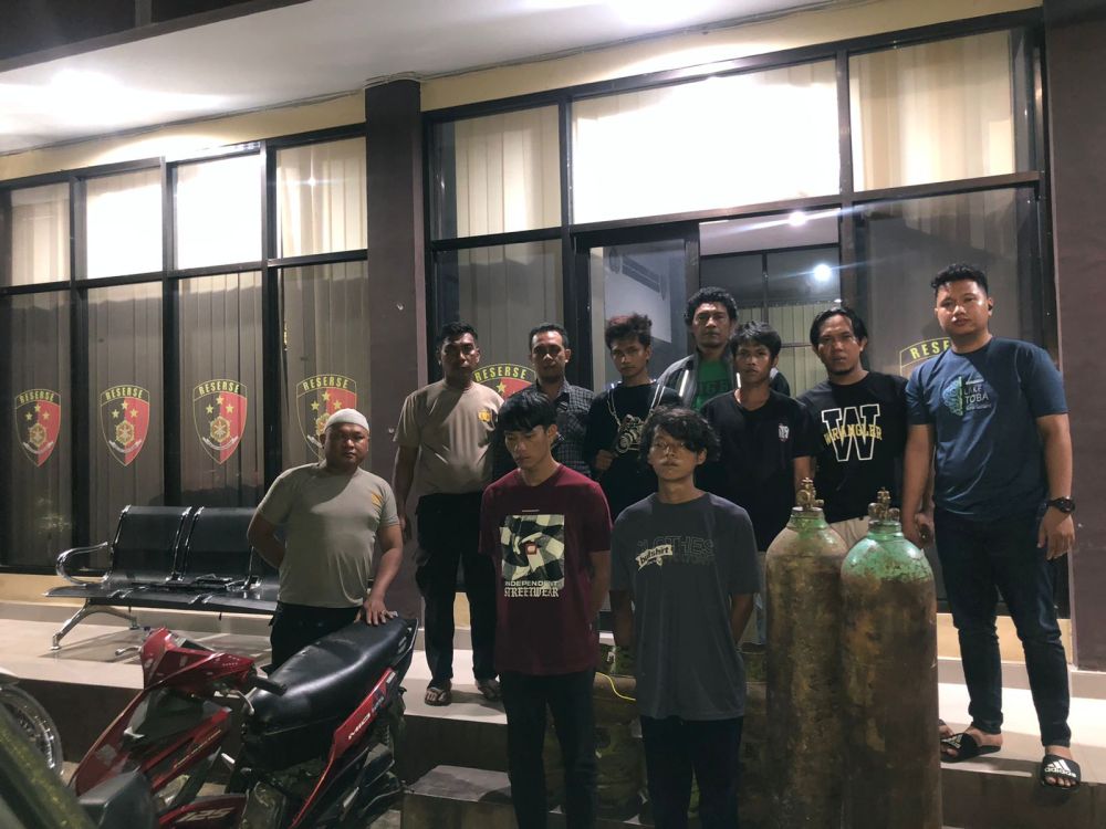 MERANGIN - Empat Pemuda dengan inisial JE (23) , HY (25), HA (17), EP (20) Warga Kecamatan Tabir Ulu ,Kabupaten Merangin , Ditangkap Team Gabungan Polsek Tabir Ulu dan Team Elang Sat Reskrim Polres Merangin, Rabu (10/05/2023). Keempat Pemuda yang keseharian nya sebagai pengangguran ini di tangkap tanpa pelawanan saat sedang berada di rumahnya di Desa Muaro Jernih. “Rabu malam sekitar jam 01.00 WIB Team Elang Polres Merangin berhasil menangkap pelaku pencurian dengan pemberatan (Curat) yang terjadi Desa Muara Jernih,” kata Kasat Reskrim AKP Lumbrian Hayudi Putra, S.I.K. M.H. Dari tangan pelaku curat ini, Team Elang Sat Reskrim Polres Merangin berhasil menyita barang bukti (BB) berupa 1 unit Sepeda Motor Mio , 8 Tabung Gas Elpiji , 3 Tabung Oksigen , 1 Buah Linggis. Kasat Reskrim Menjelaskan , “Menurut keterangan Korban , Korban sudah sering kehilangan tabung gas LPG 3 KG dari tahun 2016 perkiraan sebanyak 100 (Seratus) Tabung , dan tabung Oksigen 30 Kg sebanyak 3 (tiga) tabung dan korban mengalami kerugian sebesar Rp.21.000.000 ”. Kasat Reskrim Menambahkan “ Saat Ini pelaku sudah kita introgasi , dan menurut pengakuan Pelaku dia Beraksi di 14 tempat yang berbeda, dan Indikasi keterlibatan pihak lain akan dilakukan pengembangan lebih lanjut”. Pelaku Saat ini sudah ditahan di Polres Merangin dan di kenakan Pasal 363 KUHPidana tentang pencurian dengan pemberatan, dan di ancam dengan pidana penjara paling lama 7 Tahun.Penulis: Doni Sobri