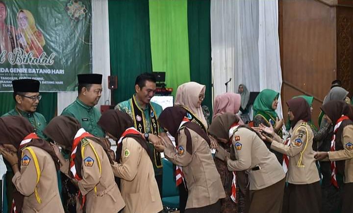 MUARABULIAN - Bupati Batanghari Muhammad Fadhil Arief, SE selaku Ayah Genre Batanghari bersama Zulva Fadhil selaku Bunda Genre Batanghari menghadiri acara silaturahmi dan halal bihalal bersama Motivator Tangguh, Forum Genre, DutaGenre Desa/Kelurahan dan Saka Kencana Batanghari tahun 2023 di gedung Pemuda Muarabulian, Kabupaten Batanghari.