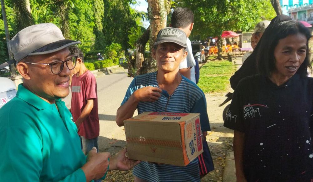 MERANGIN - Sebanyak 34 orang korban kebakaran Kantin PKK Bangko yang terjadi pada Minggu (14/5/23), mendapat santunan dari Pemkab Merangin. Santunan berupa Paket Sembako tersebut, diserahkan Bupati Merangin H Mashuri melalui Staf Ahli Zainal Abidin.