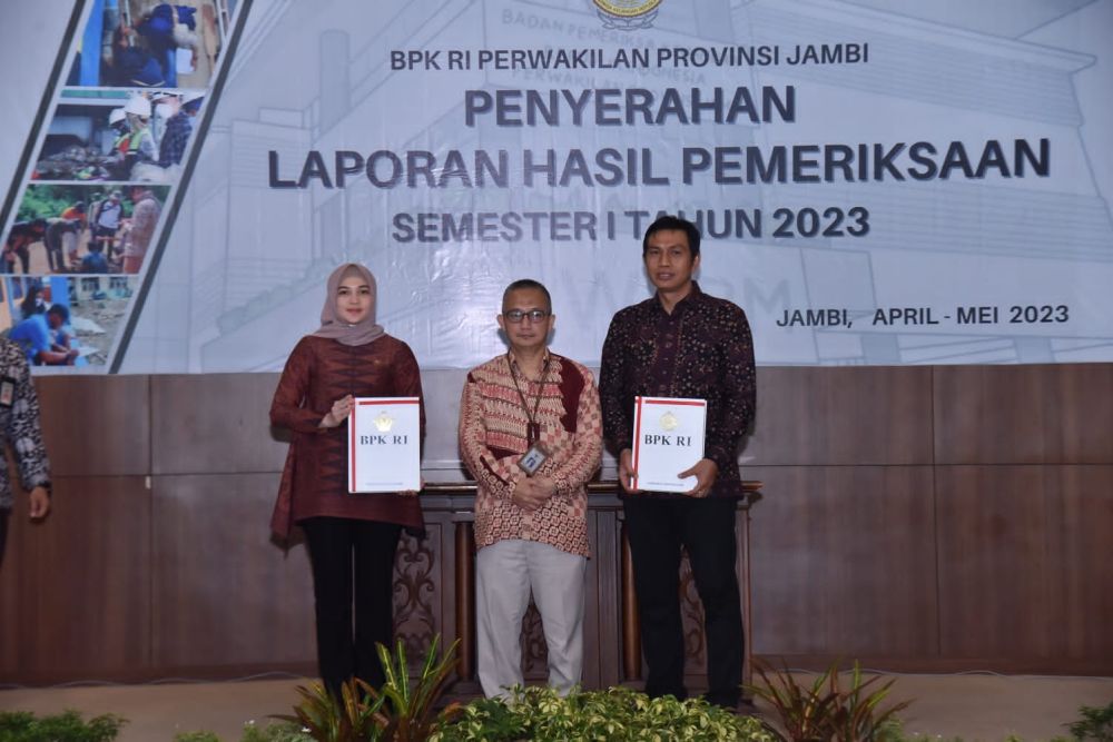 JAMBI - Bupati Batanghari, Muhammad Fadhil Arief, SE menerima penyerahan Laporan Hasil Pemeriksaan atas Laporan Keuangan Pemerintah Kabupaten Batanghari Tahun Anggaran 2022 dari Kepala BPK RI Perwakilan Jambi.