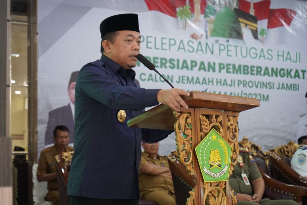 JAMBI - Gubenur Jambi Dr. H. Al Haris, S.Sos, MH mengemukakan, Petugas Haji yang berangkat mendampingi sebagian besar  orang-orang tua merupakan tugas yang mulia, disamping ibadah, jalankan dengan ikhlas dan penuh tangungg jawab. Hal tersebut dikemukakannya saat Persiapan Pelepasan Petugas Haji dan Persiapan Pemberangkatan Calon Jemaah Haji Provinsi Jambi Tahun 1444 H/2023 M, bertempat di  Asrama Haji Kota Baru Jambi, Selasa, (30/05/2023).