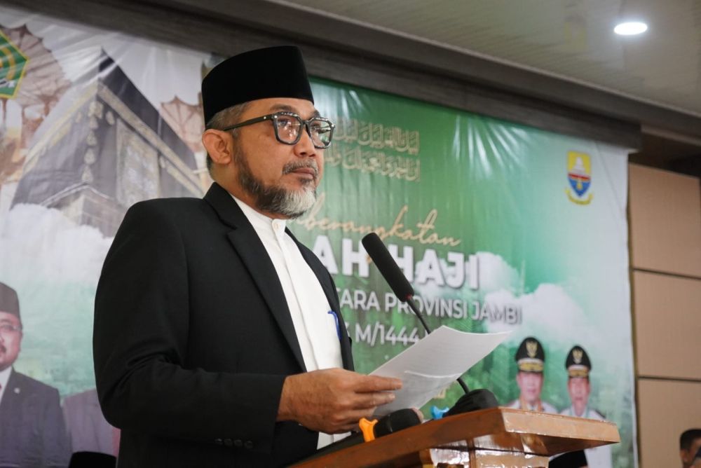 JAMBI - Sekretaris Daerah (Sekda) Provinsi Jambi H. Sudirman,SH,MH berpesan kepada para jemaah calon haji untuk meluruskan niat semata-mata hanya karena Allah SWT, senantiasa menjaga kesehatan dan kompak dalam rombongan, juga mengkonsumsi makanan yang seimbang agar dapat melaksanakan ibadah di Tanah Suci dengan baik dan sempurna. Pesan demikian disampaikan Sekda saat Pelepasan Pemberangkatan Jemaah Calon Haji Kloter 17 yang berasal dari Kabupaten Tanjung Jabung Barat Provinsi Jambi Musim Haji 1444 H/2023 M, bertempat di Asrama Haji Kota Baru Jambi, Senin, (05/06/2023).
