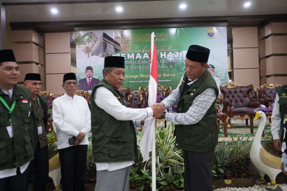 JAMBI - Wakil Gubenur (Wagub) Jambi Drs. H. Abdullah Sani, M.Pd.I.meminta kepada seluruh calon jemaah haji untuk tidak henti-hentinya bersyukur karena terpilih menjadi tamu Allah. Pernyataan ini disampaikan saat pelepasan, jemaah haji Embarkasi antara Provinsi jambi tahun 1444 Hijriah, dari Kabupaten Merangin dan Sarolangun dengan jumlah jemaah 373, kloter 20, bertempat di Asrama Haji Jambi, Kamis malam (08/06/2023)