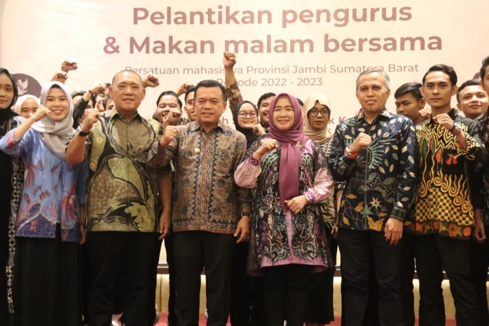 Batangharinews.com, Padang - Gubernur Jambi Dr. H. Al Haris, S.Sos, MH mengukuhan Pengurus Persatuan Mahasiswa Jambi - Sumbar, (PERMAJA), Provinsi Jambi - Sumatera Barat riode 2022 - 2023, bertempat di Hotel Axena, Padang, Jumat (9/06/2023) malam. Adapun Tema" Memperkokoh Silaturrahmi untuk berkolaborasi dalam mendukung SDM Jambi Mantap". Adapun yang dilantik sebagai Ketua Umum Permaja adalah Yordipa Rizali, Ketua Harian Arrafi Siraj, dan Sekretaris Seliana Fitri