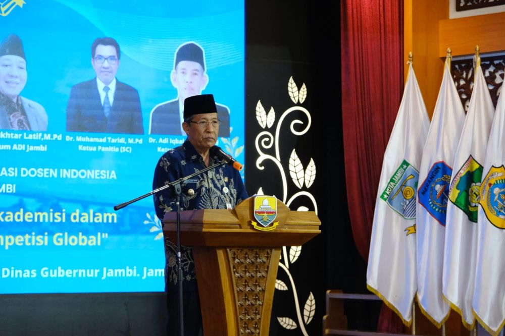 JAMBI - Wakil Gubernur Jambi, Drs. H. Abdullah Sani, M.P.di, mengharapkan ASOSIASI DOSEN INDONESIA (ADI) dan segenap pengurus ADI untuk selalu solid dan mampu menjadi barisan terdepan dalam mencerdaskan kehidupan bangsa dan masyarakat khususnya di Provinsi Jambi dan bangsa Indonesia umumnya. Pernyataan ini disampaikan Wagub pada Musyawarah Wilayah Asosiasi Dosen Indonesia (Adi) Ke-1 Provinsi Jambi dengan Tema “Profesionalitas Akademisi Dalam Mengungguli Kompetisi Global”, bertempat di Auditorium Rumah Dinas Gubernur Jambi, Sabtu (08/07/2023.
