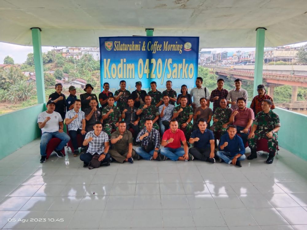 MERANGIN - Kodim 0420/Sarko kembali menyelenggarakan tatap muka dengan insan pers/media, pertemuan tersebut berlangsung di Koramil 09/Bangko Kodim 0420/Sarko Kabupaten Merangin, Provinsi Jambi. Dengan nuansa penuh keakraban secara santai, insan pers/media di wilayah Kabupaten Merangin Provinsi Jambi pagi ini Sabtu (5/8/23) bertatap muka dengan pejabat Kodim 0420/Sarko. Tatap muka ini merupakan jalinan silaturahmi Kodim 0420/Sarko Korem 042/Gapu Kodam II/Sriwijaya dengan insan pers/media dengan mengundang wartawan masing-masing media, baik media cetak, media elektronik maupun media online. Pejabat Kodim 0420/Sarko di wakili oleh Kasdim 0420/Sarko Mayor Inf Usman S.Ag., M.Pdi menjelaskan, selama ini hubungan baik Kodim 0420/Sarko dengan insan pers/media di Kabupaten Merangin maupun di Kabupaten Sarolangun Provinsi Jambi terjalin dengan baik. "Media di zaman sekarang menjadi sangat penting untuk pemberitaan begitu juga dengan Kodim 0420/Sarko berbagai kerjasama dalam pemberitaan selama ini berjalan dengan baik. Pemberitaan berkaitan dengan pelaksanaan tugas dengan mengimplementasikan keperpihakan terhadap rakyat seperti menjalankan program unggulan Kepala Staf Angkatan Darat (KASAD) berupa TNI AD manunggal air, kampung Pancasila, cegah staunting, Babinsa masuk desa, ketahanan pangan serta kegiatan lainya. Insan pers/media sebagai rekan membangun suatu daerah dalam memberikan saran, kritik dan masukan yang positif tentunya di terima dan sebagai inspirasi antar lintas sectoral yang berada di daerah. Tentunya di harapkan juga kepada insan pers/media untuk bisa menyajikan pemberitaan dengan berimbang guna memberikan informasi untuk masyarakat," terang Kasdim. Lanjut Kasdim, Kontribusi media selama ini menjadi perhatian tersendiri oleh pimpinan TNI Angaktan Darat, terbukti beberapa minggu lalu telah di laksanakan KASAD Award 2023 di Jakarta, KASAD Award 2023 merupakan bentuk perhatian TNI Angkatan Darat kepada insan pers/media, dalam acara tersebut di berikan apresiasi kepada media/wartawan yang memenuhi katagori penilaian oleh dewan juri nasional. Acara terebut juga di hadari oleh wartawan bertempat di satuan-satuan kewilayah TNI Angkatan Darat di tonton secara live serentak. Ini membuktikan bahwa kerterkaitan TNI Angkatan Darat dengan insan/pers sangatlah erat. Atas nama keluarga besar Kodim 0420/Sarko mengucapkan terimakasih atas kerjasama yang baik selama ini dan kami berterimakasih juga atas kehadiran rekan-rekan wartawan pada acara silaturahmi coffee morning hari ini, sekiranya kami mohon maaf jika ada insan pers yang belum bisa hadir, namun jalinan silaturahmi di harapkan bisa selalu terjaga dan terbina dengan baik, hendaknya. "Mari kita bersama-sama bahu membahu bekerja membangun daerah demi terwujudkan pembangunan segala bidang di wilayah," ucap Kasdim. Tatap muka silaturahmi ini wujud sinergi melalui acara coffee morning Kodim 0420/Sarko dengan Insan Pers/Media berlangsung selama dua hari. Jum'at kemarin berlangsung di wilayah Kabupaten Sarolangun dan hari ini hari kedua berlangsung acara coffee morning Kodim 0420/Sarko dengan insan pers/media wilayah Kabupaten Merangin.