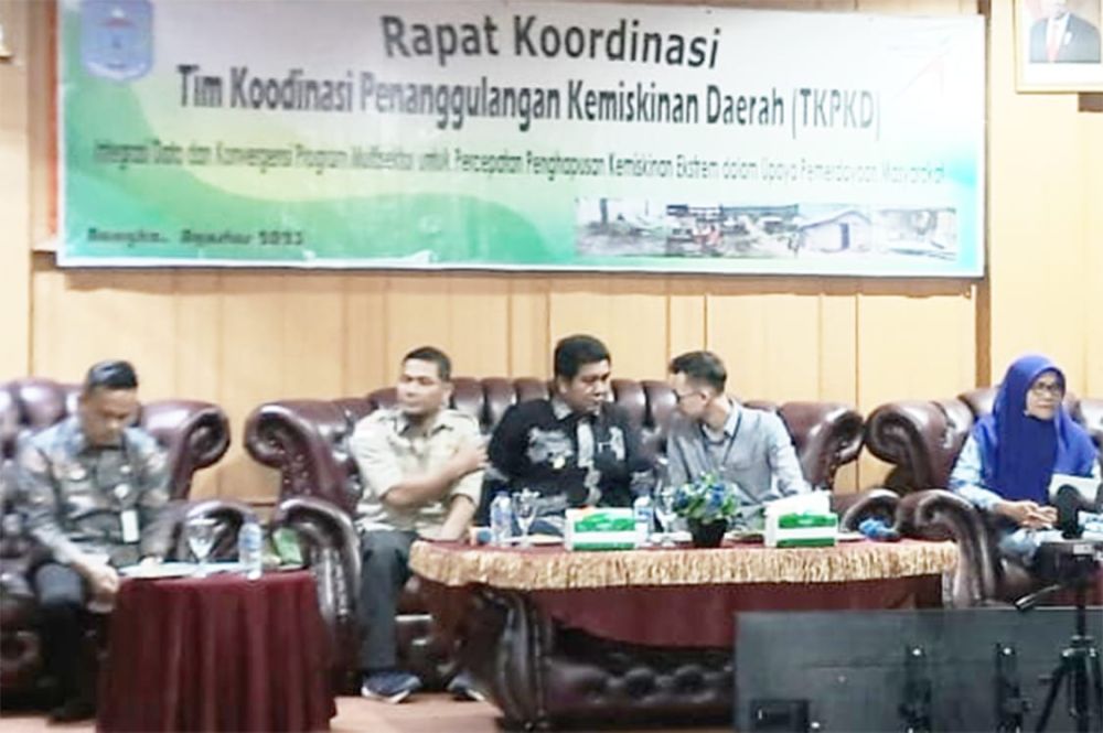 MERANGIN - Wabup Merangin, Nilwan Yahya membuka rapat koodinasi (Rakor) Tim Koordinasi Penanggulangan Kemiskinan (TKPK) Kabupaten Merangin 2023. di Ruang Rapat Depati Payung Bappeda Merangin, Kamis (10/8/23). Dikatakan wabup, pelaksanaan rakor tersebut sangatlah penting, karena merupakan salah satu wadah untuk menyamakan dan menyelaraskan persepsi para pelaku pembangunan dalam penanggulangan kemiskinan di Kabupaten Merangin. ‘’Rapat ini guna mengevaluasi pelaksanaan program penanggulangan kemiskinan, serta menerima masukan dan umpan balik sebagai bahan rumusan bersama untuk mempercepat pelaksanaan program penanggulangan kemiskinan,’’ ujar Wabup. Ditegaskan wabup yang juga Ketua TKPKD Kabupaten Merangin, Presiden Jokowi menargetkan pada 2024 sudah tidak ada lagi keluarga yang hidup dalam garis kemiskinan ekstrem lewat program tiga pilar percepatan penghapusan kemiskinan ekstrem. Tiga pilar itu, komitmen pemerintah, konvergensi program anggaran dan sasaran pemantauan dan evaluasi. Secara umum terdapat dua kelompok besar kebijakan penanggulangan kemiskinan. Dua kelompok ini menjadi kunci dalam upaya penurunan angka kemiskinan. Pertama, kelompok kebijakan dalam mengurangi beban pengeluaran kelompok miskin ekstrem melalui bantuan sosial dan subsidi. Lalu terang wabup, kedua kelompok kebijakan pemberdayaan dalam rangka meningkatkan produktivitas kelompok miskin ekstrem untuk meningkatkan kapasitas ekonominya. ‘’Berbagai program penanggulangan kemiskinan telah diluncurkan, baik berupa program-program perlindungan sosial yang berbasis rumah tangga, program-program pemberdayaan masyarakat yang berbasis kelompok,’’ jelas Wabup. Program berbasis kelompok itu lanjut wabup, bantuan kredit usaha rakyat dan program penganggulangan kemiskinan lainnya serta pembangunan sarana infrastruktur dasar baik transportasi, pertanian, pendidikan, kesehatan serta akses permodalan. Selain itu wabup menyebutkan, ada lima tantangan yang menjadi fokus penanganan kemiskinan, yaitu optimalisasi kapasitas kelembagaan penanggulangan kemiskinan, kebijakan dan penganggaran program/kegiatan yang belum memihak orang miskin, tingkat kualitas sumber daya manusia, ketersediaan data dan informasi mengenai kemiskinan serta pelaksanaan monitoring dan evaluasi kebijakan/program penanggulangan kemiskinan.